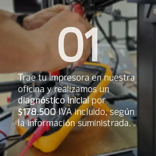 Nuestro proceso incluye evaluación técnica, cotización detallada y repuestos originales, asegurando un servicio ágil, confiable y con respaldo de más de 10 años de experiencia en impresión 3D en Colombia.
